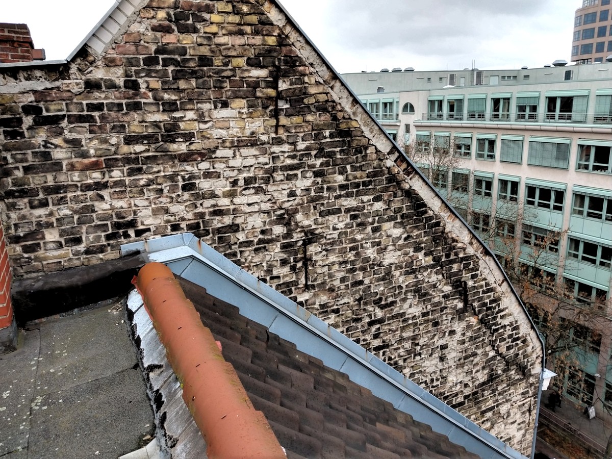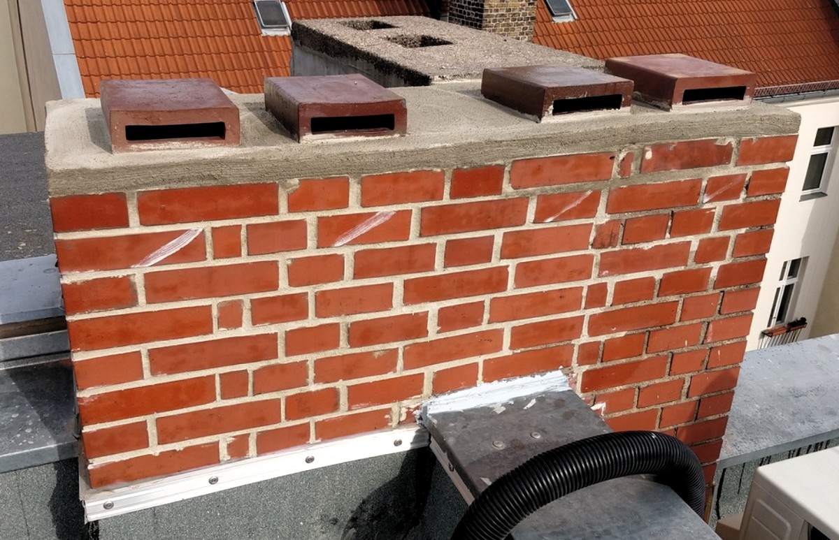 Viele Schornsteine werden durch den Einbau von Zentralheizungen nicht mehr genutzt aber durch die fehlende Heizung immer feuchter und mit der Zeit marode. Mörtelfugen werden ausgewaschen, einzelne Ziegel lose und die Stabilität eines ganzen Schornsteinkopfes kann gefährdet sein. Hier können wir auch an schwierigen Stellen oft einfach helfen und Schornsteine neu verfugen, einzelne Stellen neu aufmauern oder auch ganze Schornsteinköpfe abtragen, wenn der zuständige Schornsteinfeger dies empfiehlt. Auch die Laufanlagen für Schornsteinfeger - ein extrem wichtiger Bestandteil für sicheres Arbeiten auf dem Dach - sind oft in einem maroden Zustand und müssen bei Bedarf dem Stand der Technik angepasst werden.