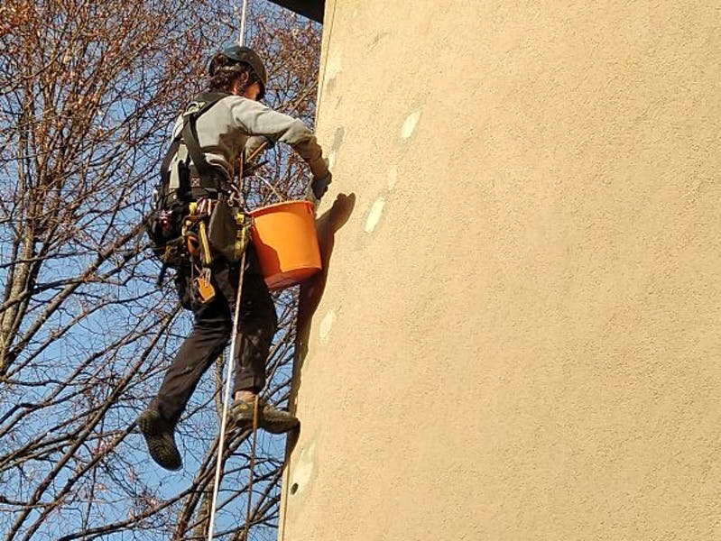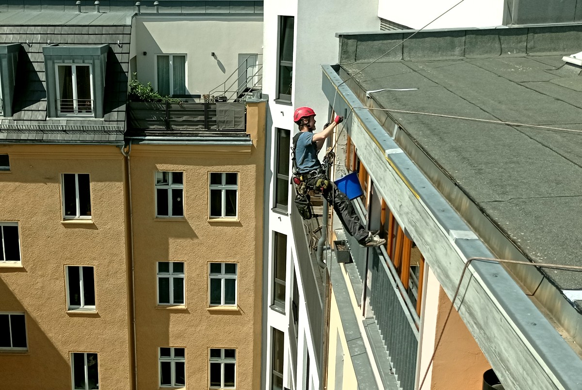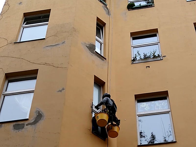 An Hauswänden kann es alterungsbedingt oder durch Fehler in der Wasserableitung zu Putzabplatzungen kommen, die eine ernste Gefahr darstellen können - Putzstücke können unkontrolliert abstürzen und Menschen verletzen oder Schäden an Dingen verursachen. Aus dem Seil können wir Fassaden auf losen Putz überprüfen, die losen Stellen kontrolliert abtragen, eventuelle Ursachen beheben, die Stelle neu verputzen und bei Bedarf auch grundieren und streichen.