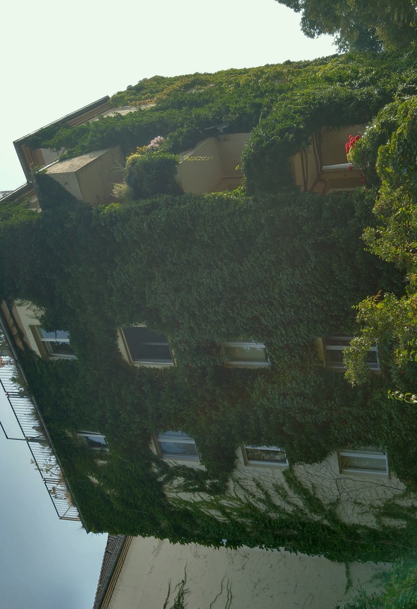 Viele Fassaden in der Stadt sind mit rankenden Pflanzen bewachsen - zumeist Efeu oder Wilder Wein. Das sind großartige Biotope für Vögel und andere Tiere, sie kühlen die Häuser im Sommer, produzieren Sauerstoff und erfreuen das Auge im grauen Stadtalltag. Ein gewisses Maß an Pflege ist aber dennoch regelmäßig nötig, da die meisten Kletterpflanzen sogenannte Lichtflüchter sind, die sich dunkle Spalten zum Festhalten suchen - also hinter Fensterbretter, Dachziegel, Regenrinne oder Fallrohre wachsen.