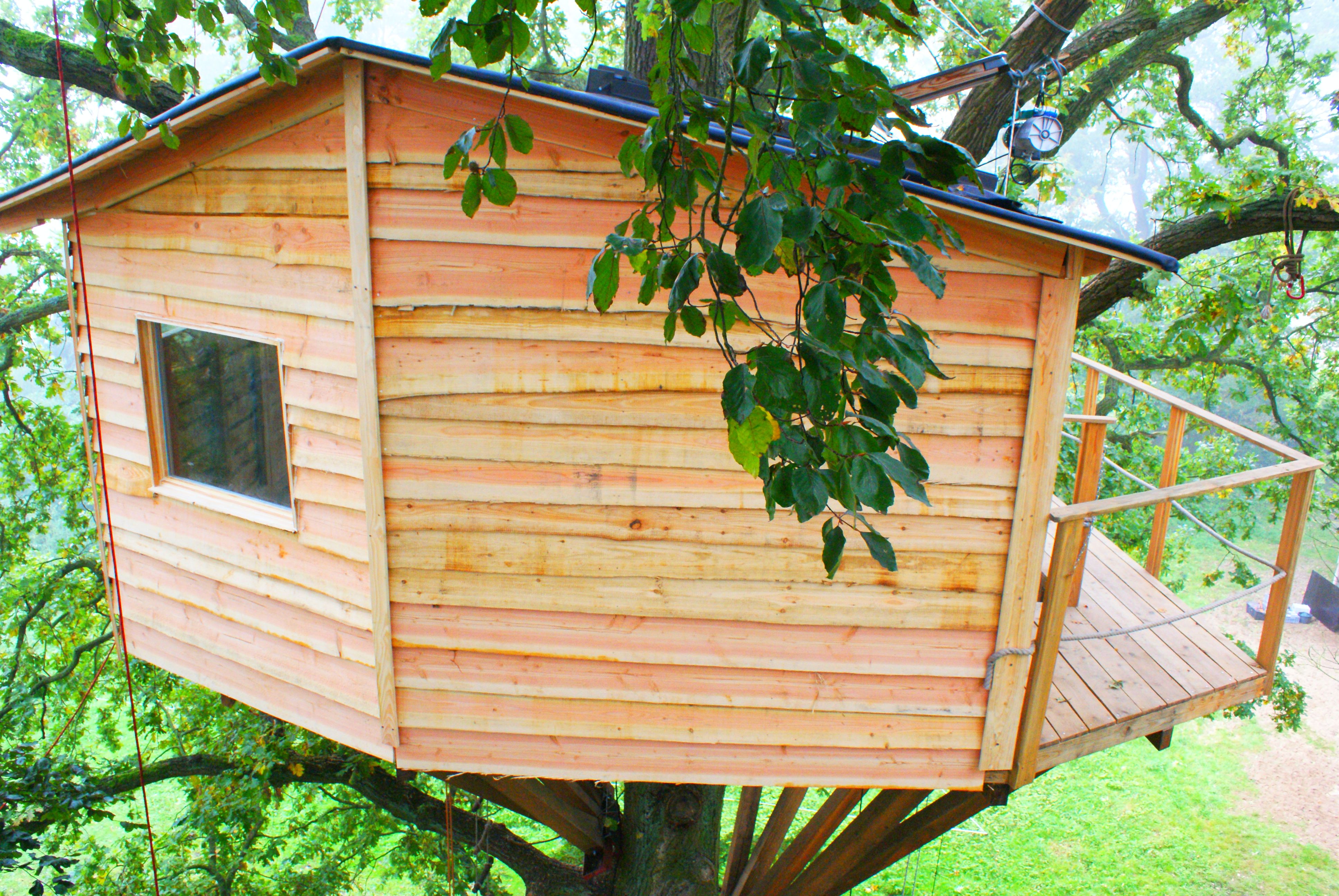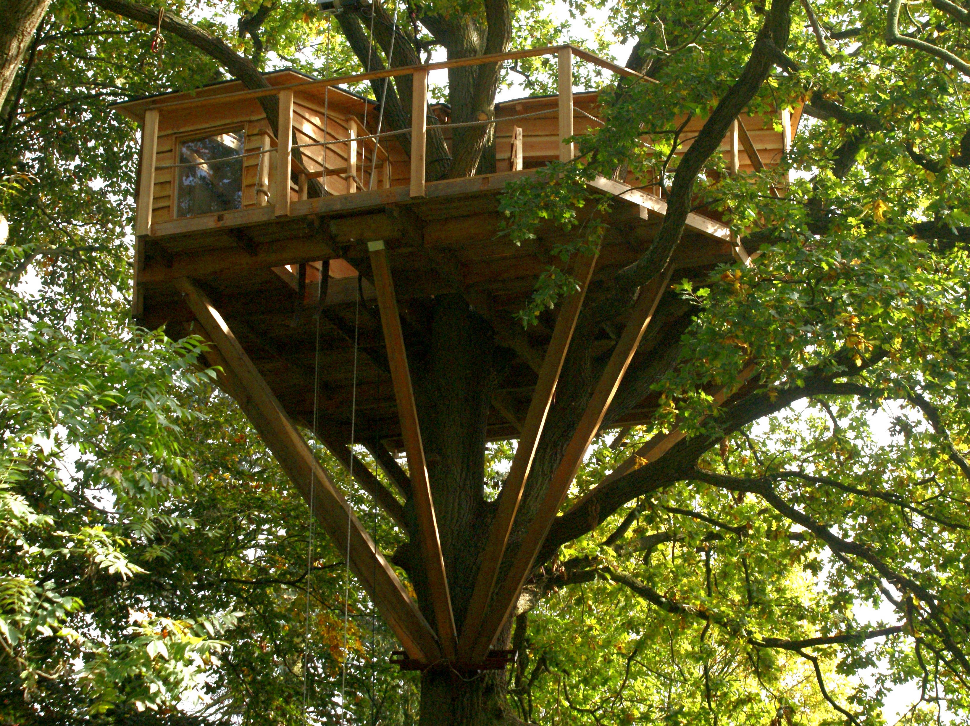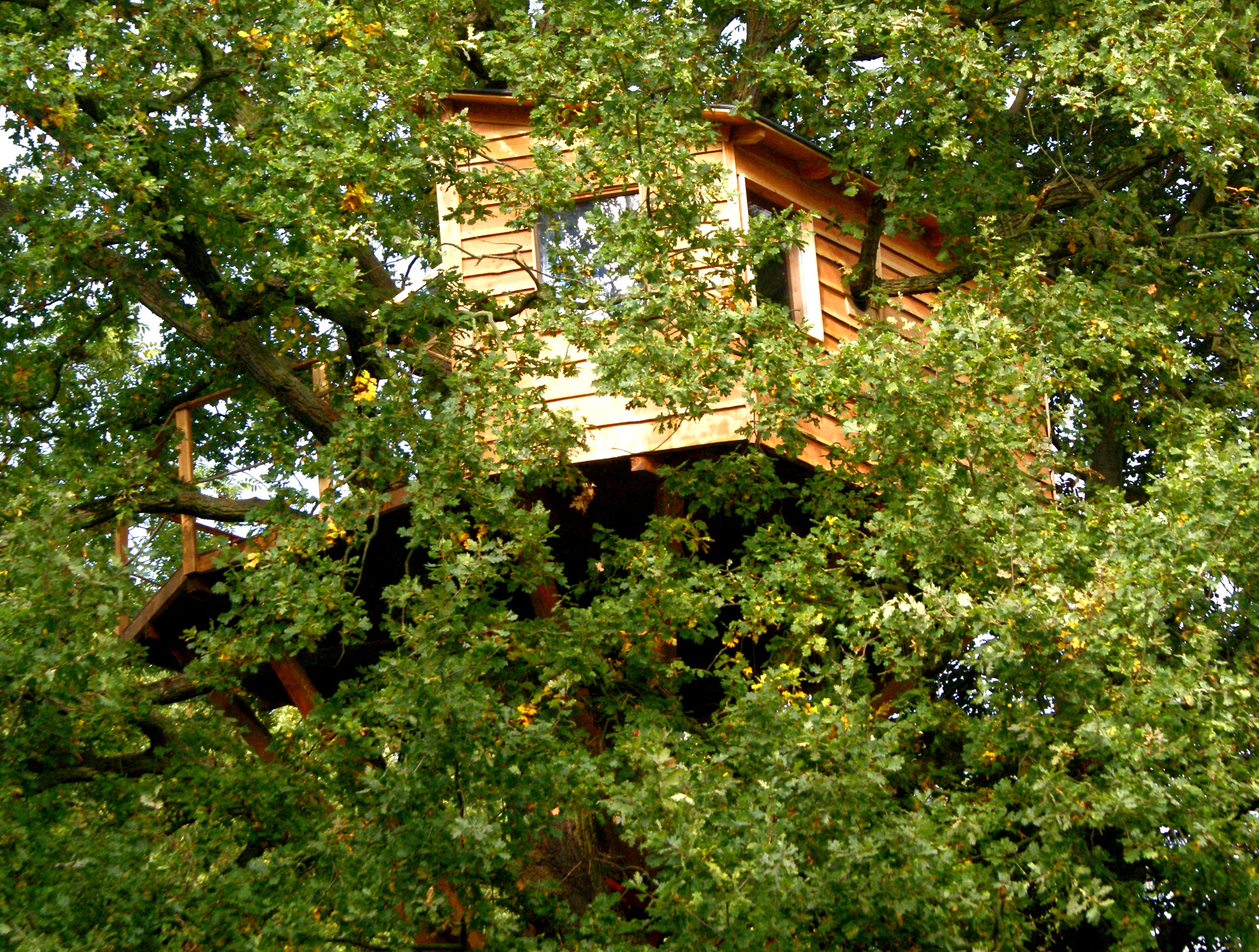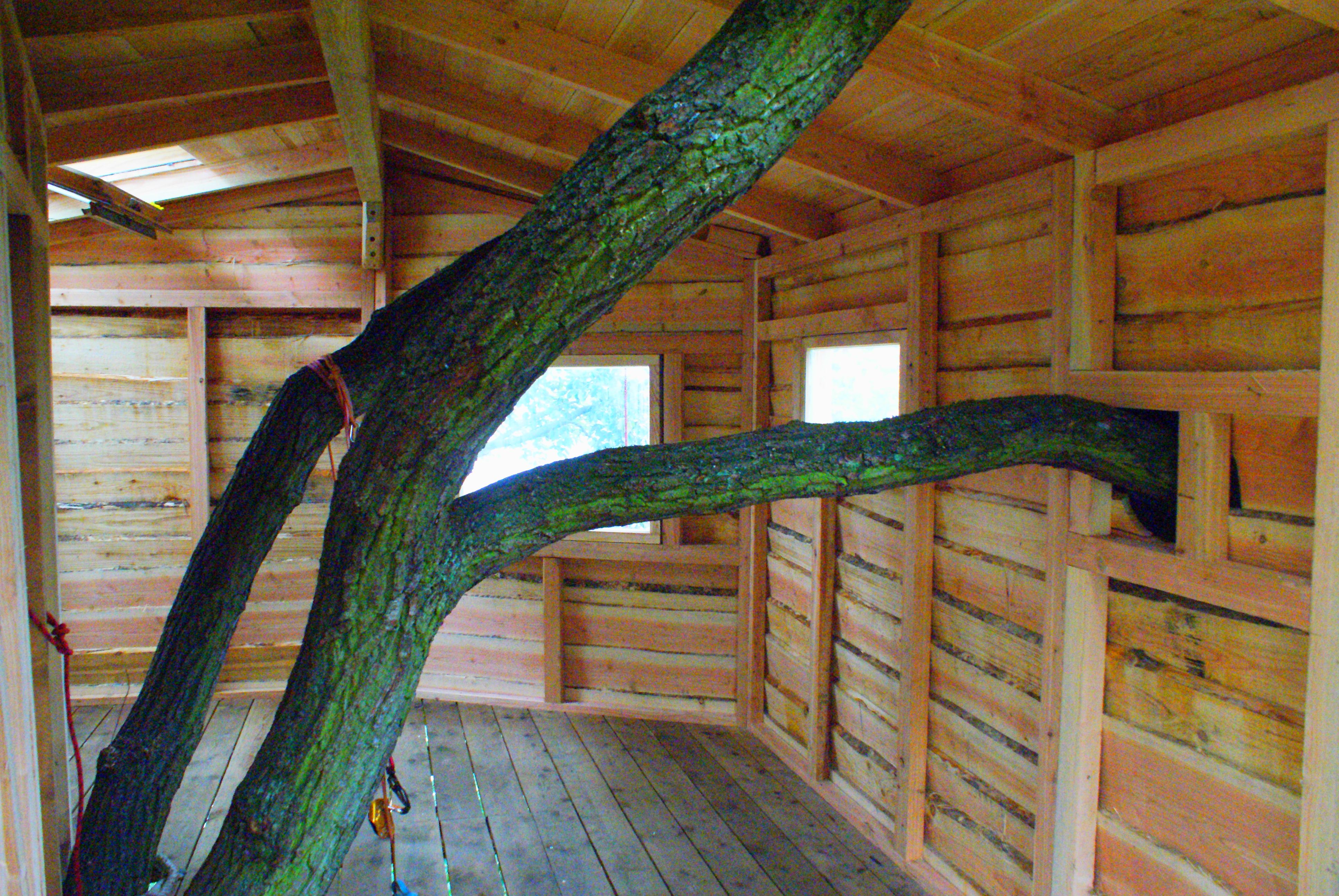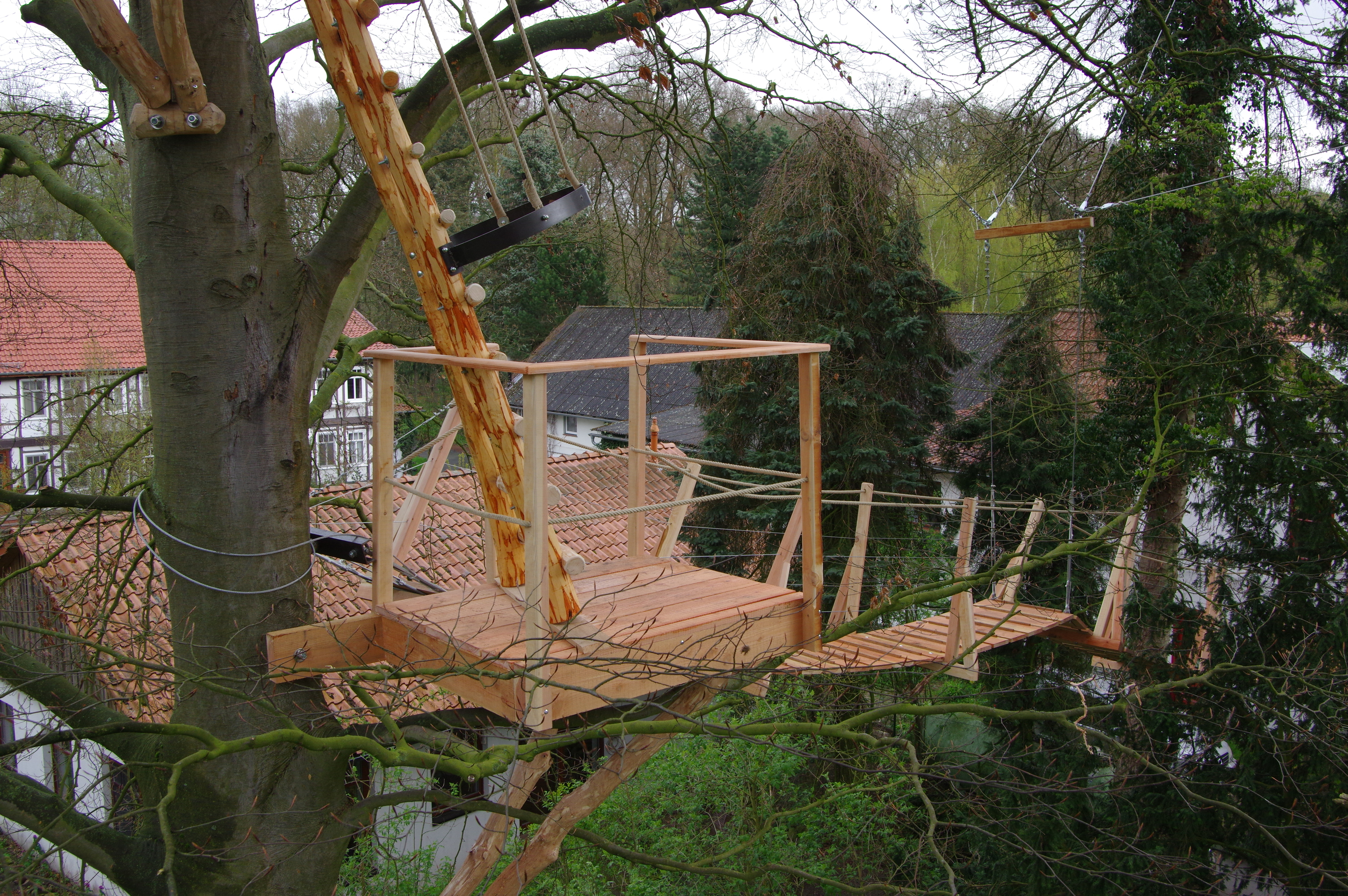 Erst haben wir alles auf dem Boden gebaut, dann in die Einzelteile zerlegt und dann im Baum wieder passgenau zusammengefügt.